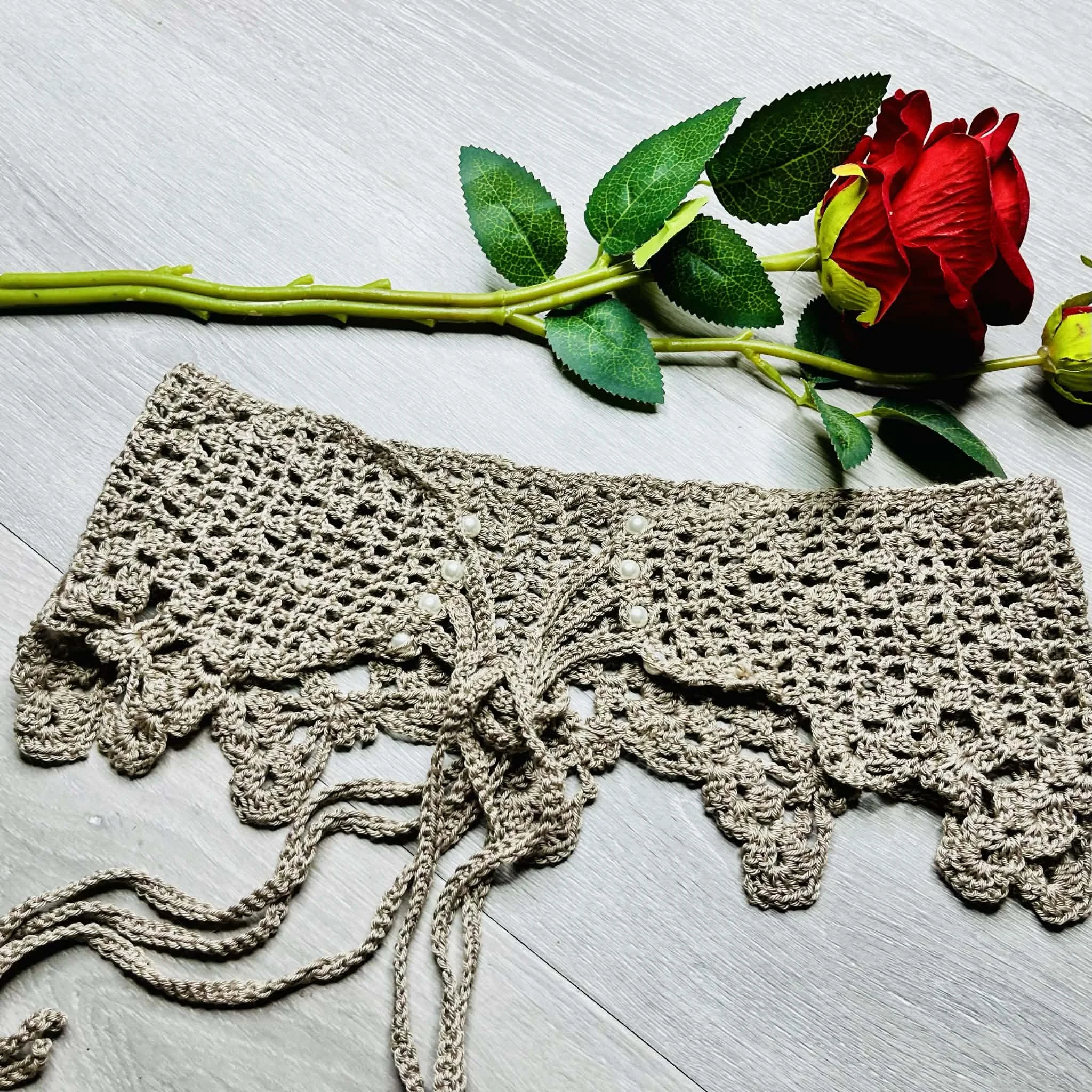 The butterflies are worked as you go down the side of the belt, and the belt itself is worked flat in rows.
